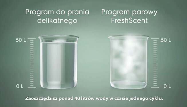 Programy prania: | Antyalergiczny, Bawełna, Czyszczenie bębna, Delikatny, Denim, Dziecięce, Eco 40-60°C, Kołdry, Koszule, Odzież zewnętrzna, Płukanie, Pościel, Program szybki 14 minut, Programy parowe: FreshScent i Kaszmir, Ręczniki, Sport, Syntetyki, UltraWash, Wełna, Wirowanie/Odpompowanie, Zasłony |