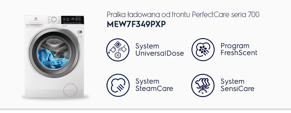 Pralka ELECTROLUX MEW7F349PXP SteamCare 700 UniversalDose 9 kg 1400 obr A WoolmarkBlue