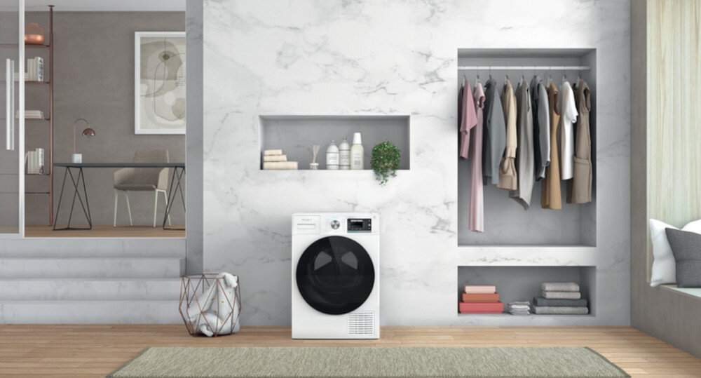Technologia suszenia z zastosowaniem pompy ciepła wykorzystuje zamknięty obieg gazu chłodzącego. Dzięki temu zyskujemy większą skuteczność suszenia, zużywając jednocześnie mniej energii. Dzięki systemowi bezwentylowemu urządzenie może być zainstalowane w dowolnym miejscu.