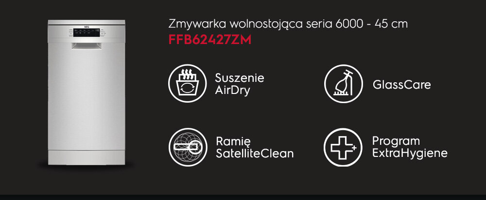 - Zmywarka AEG FFB62427ZM Hot Air Drying, Dual Spray Arm