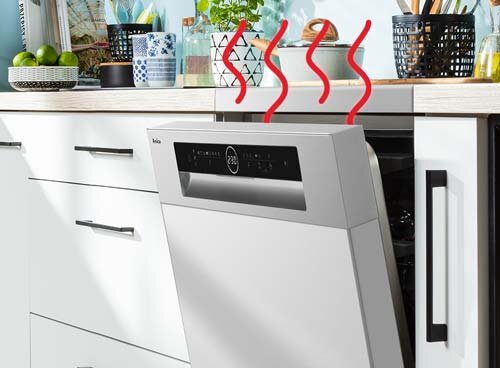 Szybkie, naturalne i energooszczędne suszenie naczyń dzięki samoczynnie uchylającym się drzwiom zmywarki.
