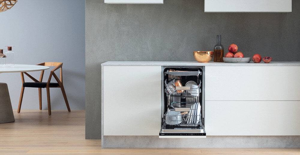 Nie martw się, że po rodzinnym obiedzie nie wystarczy miejsca na szczególnie brudne naczynia. Zmywarka WHIRLPOOL z regulacją górnego kosza zapewnia dodatkową przestrzeń, której czasami brakuje.
