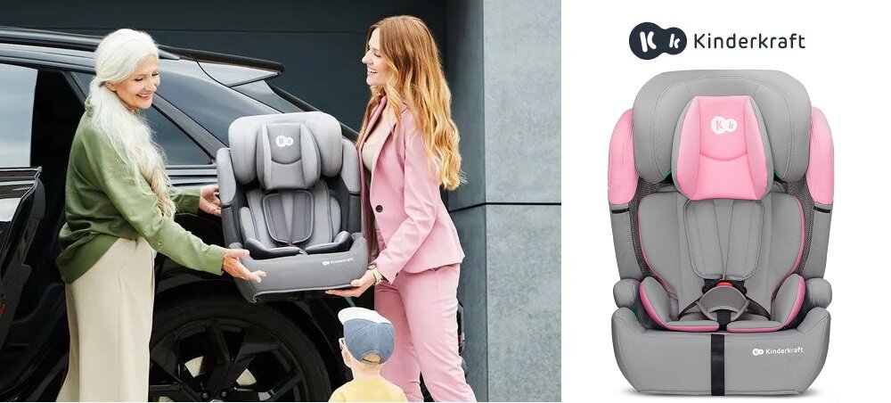- Fotelik samochodowy KINDERKRAFT Comfort Up I-Size 76-150 cm (9-36 kg) Szaro-różowy