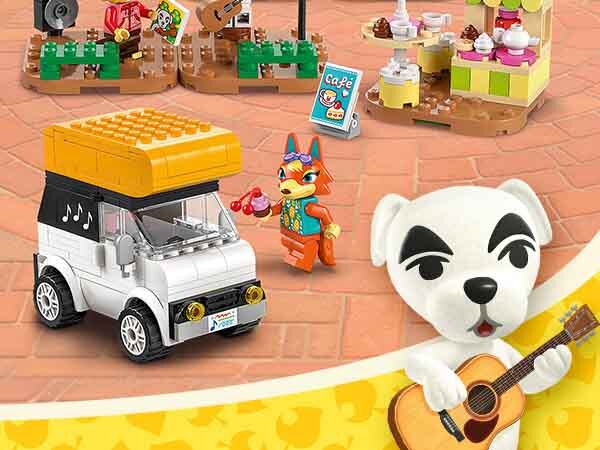 K.K. gra koncert dla innych minifigurek LEGO® Animal Crossing™ na placu Resident Services.