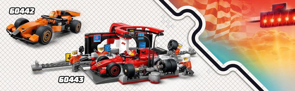 Zobacz inne zestawy konstrukcyjne LEGO® F1® (sprzedawane osobno), aby budować, ustawiać bolidy na półce i odgrywać wyścigi.