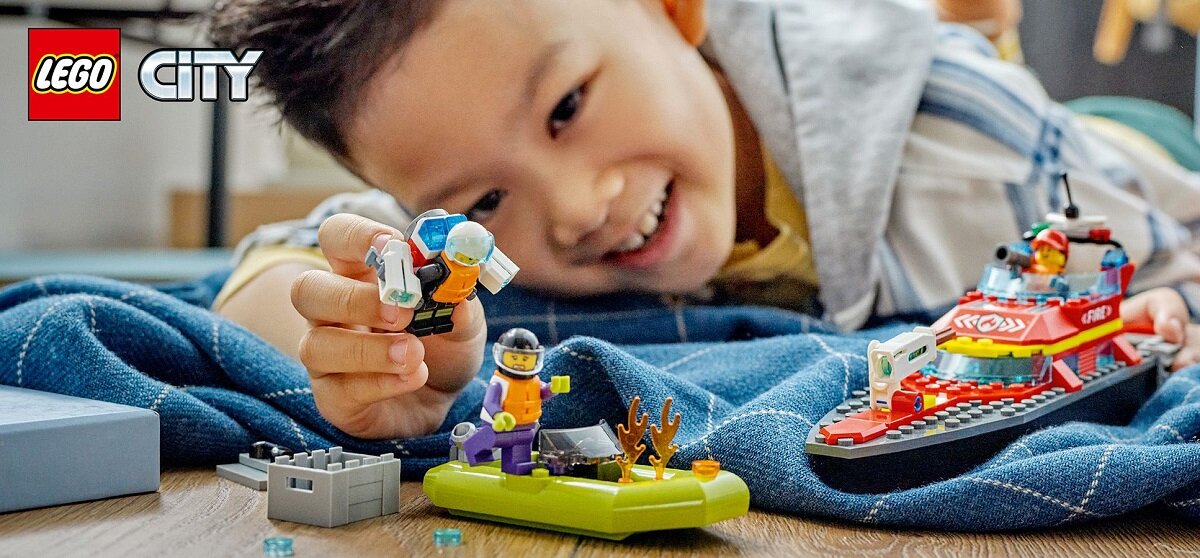 Zestawy LEGO® City są pełne realistycznych pojazdów, szczegółowych budynków i niezwykłych postaci, które zachęcają do pomysłowego wcielania się w role – budowanie i zabawa nimi to mnóstwo frajdy. W pudełku jest wszystko, czego potrzebują dzieci do zbudowania łodzi strażackiej i motorówki, a także minifigurki.