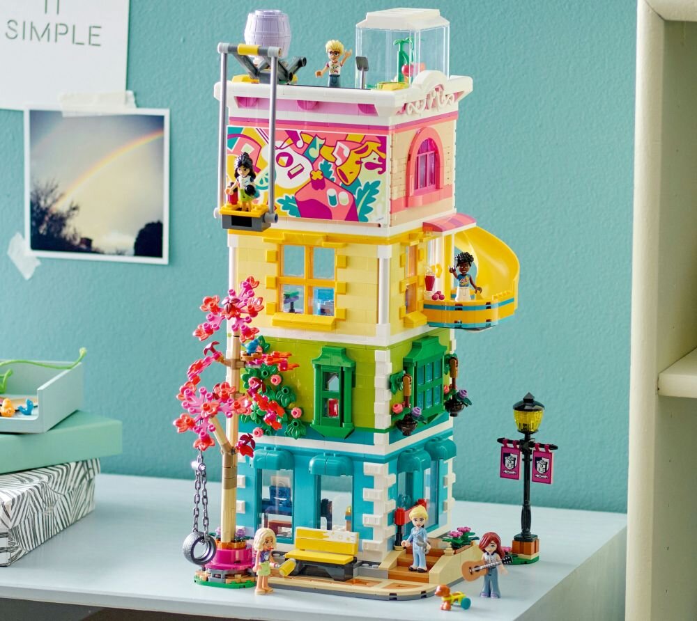 Dzieci w wieku od dziewięciu lat mogą odkrywać kreatywne hobby w domu kultury LEGO® Friends (41748). Poziomy zabawkowego budynku można przestawiać, więc dzieci mogą dostosować model do własnych upodobań. Autorka tekstów Paisley uwielbia spędzać czas w sali muzycznej. Olly przesiaduje w studiu nagraniowym, a utalentowana Liann czuje się jak w domu w studiu artystycznym.