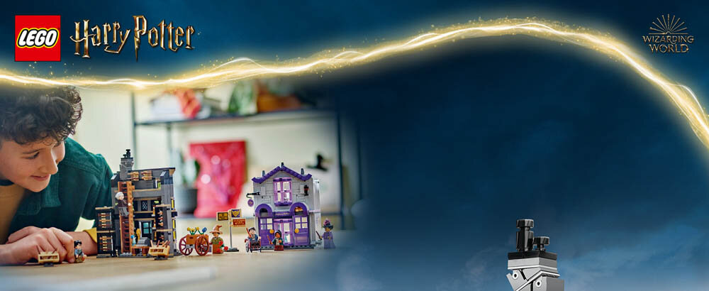 - LEGO 76439 Harry Potter Sklepy Ollivandera i Madame Malkin