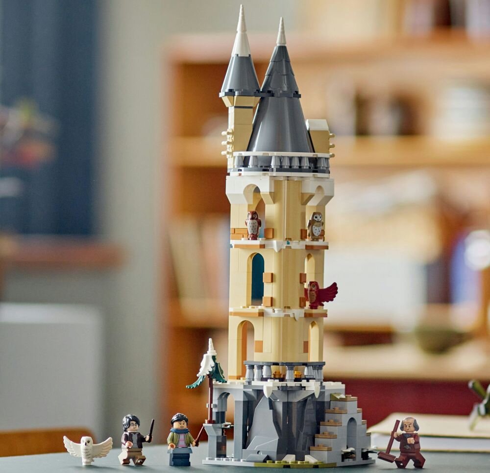 Zbudowana z klocków sowiarnia to wieża z parapetami, na których sowy mogą siadać, posągiem sowy i innymi akcesoriami. Model sowiarni Hogwartu z tego 364-elementowego zestawu ma 36 cm wysokości, 12 cm szerokości i 10 cm głębokości.