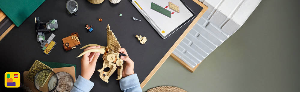 Dzięki temu zestawowi konstrukcyjnemu LEGO® Jurassic World dzieci mogą zbudować własną czaszkę dinozaura, a potem zrobić z niej ozdobę.