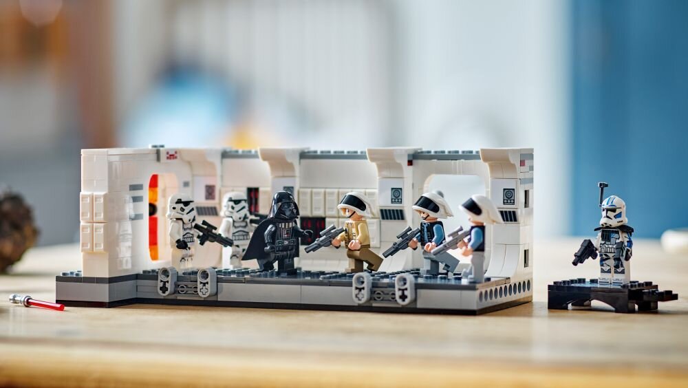 Odtwórz kultową scenę wejścia na pokład Tantive IV z filmu Gwiezdne Wojny: Nowa nadzieja, w której Darth Vader i jego szturmowcy walczyli z Rebeliantami - zrób to w formie zabawy lub ozdobnej dioramy.