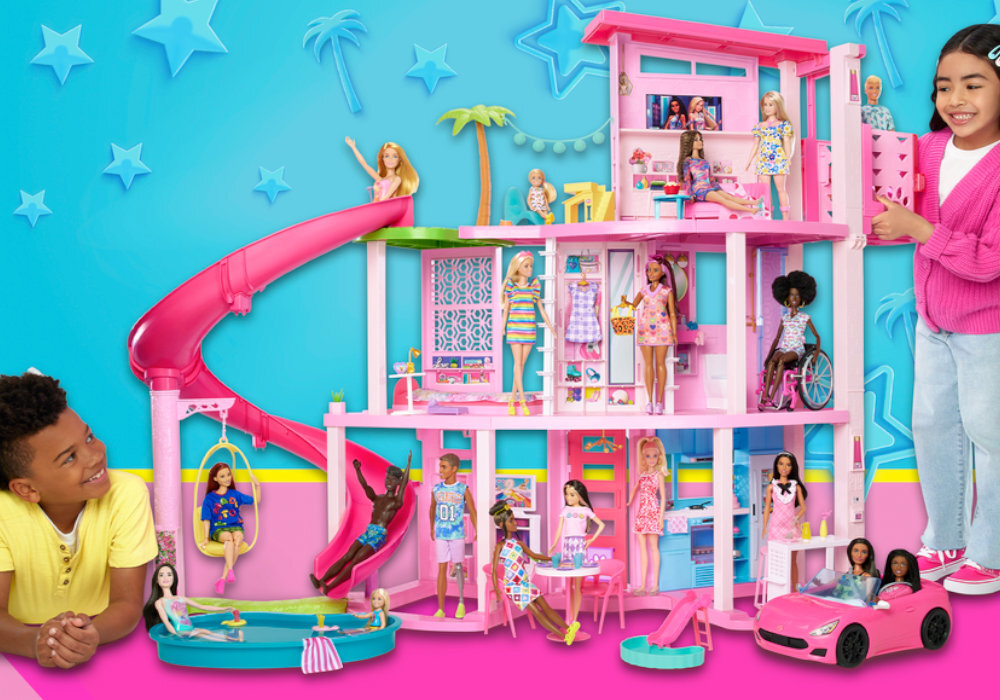 Zaproś swoje lalki i przyjaciół na niezapomnianą imprezę nad basenem z najwyższą zjeżdżalnią w historii Barbie Dreamhouse! Spiralna zjeżdżalnia, sięgająca aż na najwyższy poziom, gwarantuje ekscytujące zjazdy prosto do orzeźwiającego basenu.