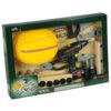 Zestaw składa się z żółtego, plastikowego kasku ochronnego (kask jest zabawką, nie stanowi rzeczywistej ochrony), 4 plastikowych imitacji desek z otworami do wkręcania śrub, 9 dużych, czarnych śrub z czerwonymi nakrętkami, 4 gwoździ, kombinerek, młotka, śrubokrętu, piły z ciemno-zieloną rączką, klucza szwedzkiego oraz z czarno-zielonej, bezprzewodowej wkrętarki Bosch z trzema wymienialnymi końcówkami.
