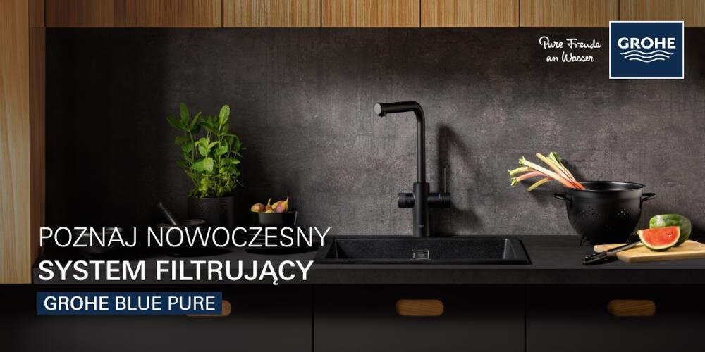 System kuchenny GROHE Blue Pure - to prawdziwa rewolucja w prowadzeniu zdrowego stylu życia. System zapewnia czystą wodę, która jest bogatym źródłem cennych minerałów, które są niezbędne dla zdrowia Twojego organizmu, takich jak: potas, magnez i sód. Dzięki wydajnym filtrom - jesteś pewien, że pijesz czystą i zdrową wodę, która nie tylko wybornie smakuje, ale także wspomaga prawidłowe funkcjonowanie Twojego organizmu!