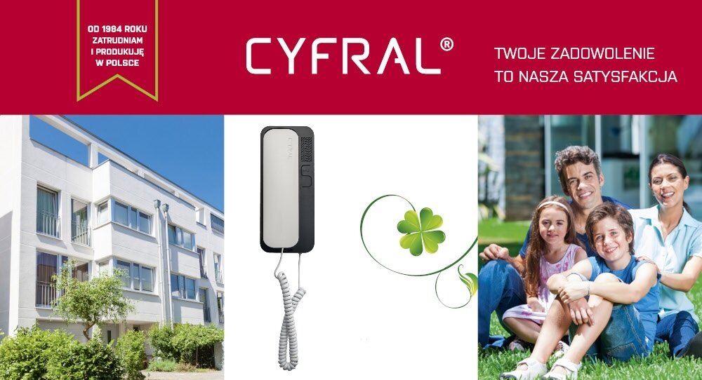 Unifon CYFRAL Smart to urządzenie do pracy w systemach dwużyłowych, które przeznaczone jest do instalacji analogowych i analogowo-cyfrowych CYFRAL 1+n. Jest to słuchawka, która umożliwia zdalne otwieranie drzwi wejściowych. Jest on częścią systemu domofonowego, który współpracuje z elektroniką CYFRAL typu: CC1000, CC1500, CC1550 oraz TD3, TD4, TD6, panelem domofonowym COSMO R1/R2.