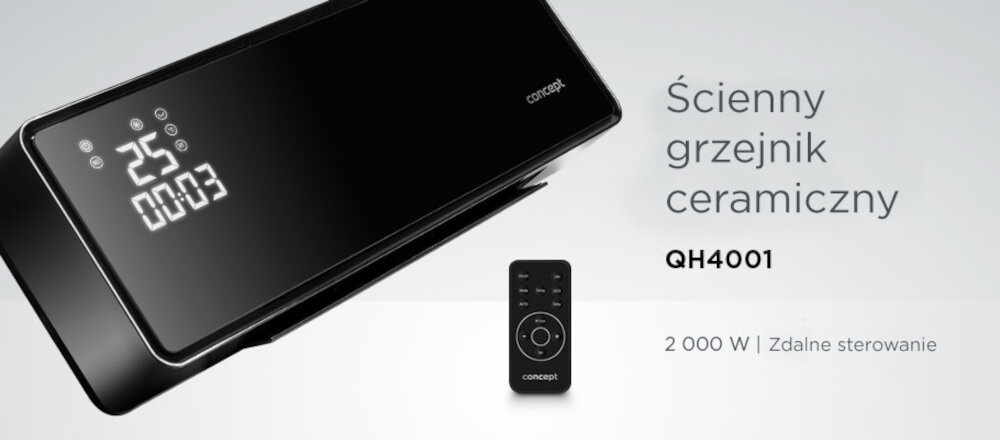 Grzejnik ceramiczny CONCEPT QH4001, pilot, zestaw montażowy, dokumentacja.
