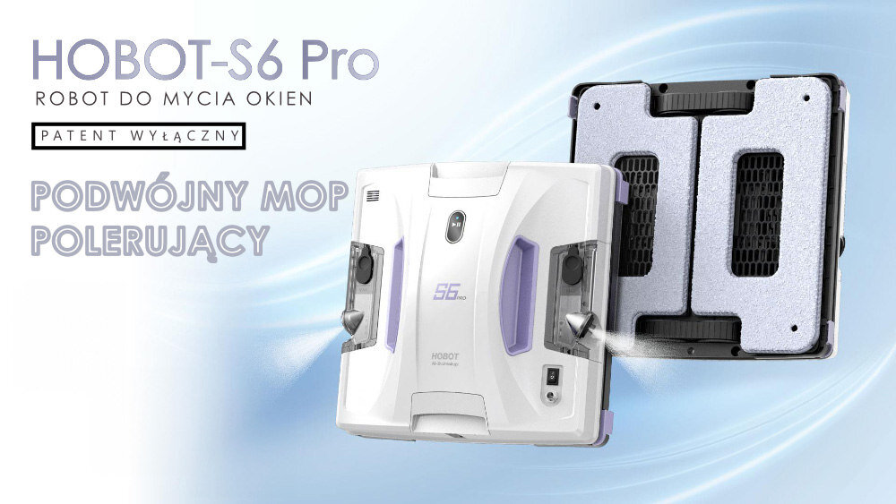 Robot do mycia okien HOBOT S6 Pro, 1 x pilot, 1 x zasilacz, adapter, 1 x przedłużacz, 1 x płyn do mycia szyb, 1 x ściereczka z mikrofibry, 1 x lina zabezpieczająca, dokumentacja.