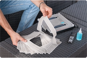 W zestawie z robotem SETTI+ WC700 znajduje się bogaty pakiet akcesoriów, zapewniający gotowość do pracy przez długi czas. Obejmuje on aż 8 wymiennych nakładek czyszczących wielokrotnego użytku, co stanowi praktyczny zapas na wiele cykli mycia. Ponadto dołączono 4 zapasowe dysze natryskowe, które są łatwe do samodzielnej wymiany bez potrzeby użycia specjalistycznych narzędzi. Taki komplet pozwala na utrzymanie wysokiej skuteczności czyszczenia i ogranicza potrzebę dokupowania części eksploatacyjnych.