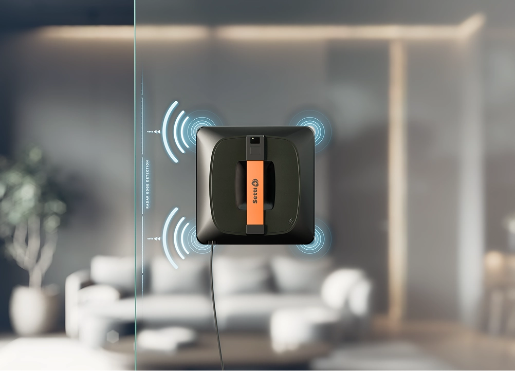 Robot SETTI+ WC700 wykorzystuje inteligentny system rozpoznawania granic, który pozwala na autonomiczną i bezpieczną pracę urządzenia. Dzięki wbudowanym czujnikom, urządzenie samodzielnie wykrywa krawędzie i ramy okienne, automatycznie dostosowując swoją ścieżkę czyszczenia. Ta funkcjonalność sprawia, że jest on wszechstronnym narzędziem, przygotowanym do pracy zarówno na standardowych oknach z ramą, jak i na powierzchniach bezramowych, takich jak szklane balustrady, lustra czy kabiny prysznicowe, bez ryzyka zsunięcia się.