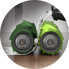 Robot gruntownie odkurza zarówno twarde podłogi, jak i miękkie dywany, dostosowując automatycznie wysokość głowicy czyszczącej w taki sposób, by 2 gumowe szczotki główne przylegały bezpośrednio do sprzątanego podłoża.