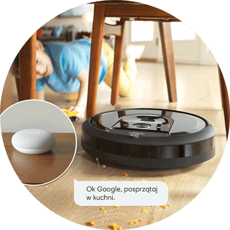 iRobot Roomba® i7 jest kompatybilny z urządzeniami, które wyposażone zostały w rozwiązania Google Home, Siri i Amazon Alexa. Umożliwiają one obsługę robota przy pomocy komend głosowych.