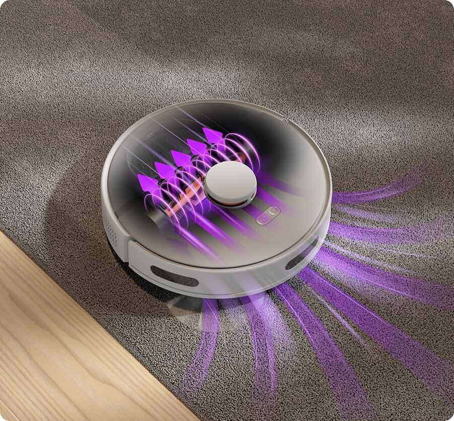 Dzięki zastosowaniu systemu nawigacji laserowej 360° (LiDAR) robot znajduje najefektywniejszą drogę prowadzącą przez pomieszczenia oraz między meblami. Pozwala to na dokładne oczyszczenie każdego obszaru.