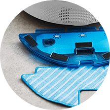 Wlej wodę do nakładki mopującej, zwilż ściereczkę i przypnij ją do nakładki. Całość podłącz do robota i gotowe! W zestawie znajdziesz 2 ściereczki mopujące z mikrofibry. Możesz je wygodnie prać w pralce nawet do 100 razy.