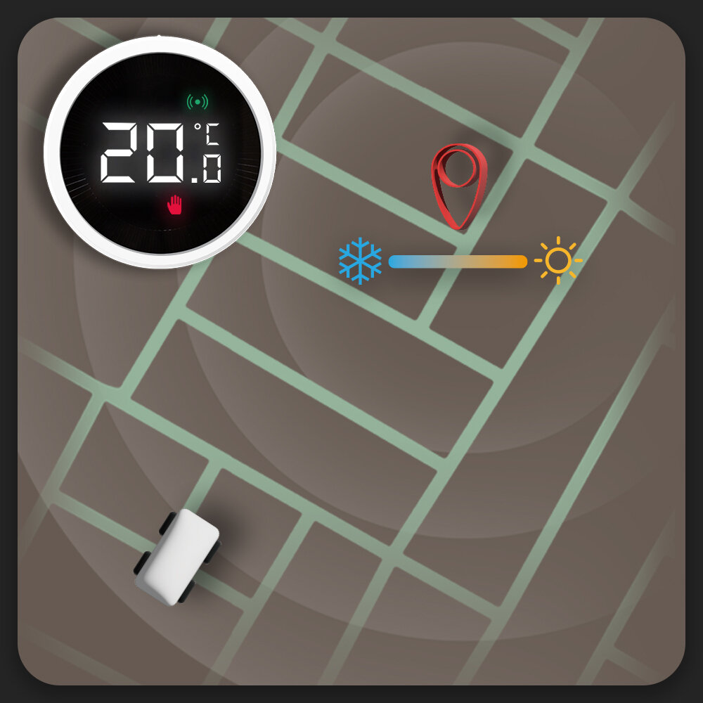 Urządzenie wyposażone jest w technologię geofencing, dzięki której automatycznie dostosuje temperaturę na podstawie Twojej lokalizacji. Rozpocznij nagrzewanie mieszkania, gdy aplikacja wykryje, że wracasz z pracy i zrelaksuj się po ciężkim dniu w ciepłym, przytulnym mieszkaniu lub ustaw automatyczne wyłączenie ogrzewania po wyjściu z domu i zacznij oszczędzać na ogrzewaniu.