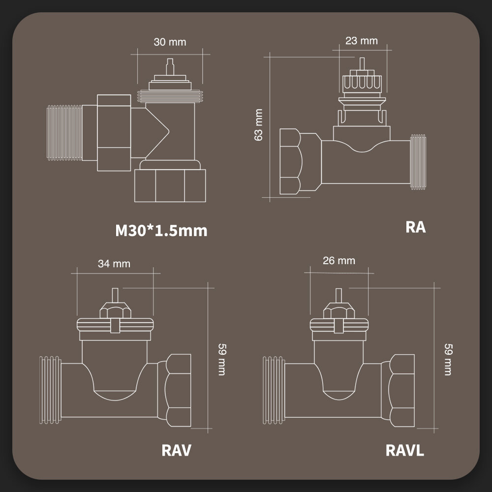 UWAGA: Mimo że urządzenie jest kompatybilne tylko z termostatycznymi zaworami grzejnikowymi (nie wspiera zaworów manualnych i RTL), w większości przypadków istnieje możliwość przerobienia posiadanego zaworu na kompatybilny za pomocą odpowiednich adapterów. W celu uzyskania dodatkowych informacji skontaktuj się z profesjonalnym instalatorem.