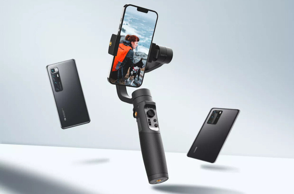 Prostotę sterowania doceni każdy użytkownik. Gimbal został wyposażony w wygodny joystick oraz przyciski, dzięki którym możesz kontrolować funkcje gimbala, a nawet smartfona. Możesz przełączać tryby, przybliżać i oddalać obraz czy zmieniać orientację z poziomego w pionowy. Co więcej, w zestawie otrzymujesz mini statyw, dzięki któremu możesz po prostu ustawić gimbal i zacząć nagrywać.