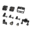 Kamera, ładowarka USB-A, kabel USB-A/microUSB, obudowa wodoszczelna, akcesoria montażowe, pilot bezprzewodowy, dokumentacja.