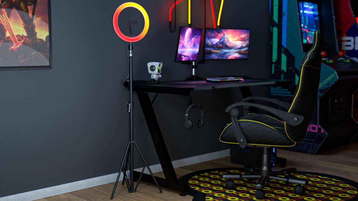 Lampa pierścieniowa ma średnicę 32 cm i została wyposażona w aż 27 trybów RGB i 3 odcienie białego światła. Dzięki temu stworzysz wyjątkowy klimat, który możesz dostosować do gry, w którą grasz. Płynne przejścia, światła stroboskopowe, jednolity kolor – to tylko kilka z wielu trybów oświetlenia, które możesz zmieniać w nieskończoność.