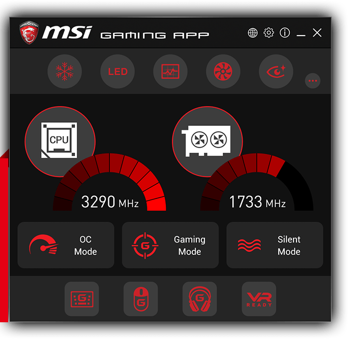 Aplikacja MSI Gaming App pozwala za pomocą jednego kliknięcia przełączać się pomiędzy profilami wydajności, które pozwolą uwolnić dodatkową wydajność dla gier lub przełączyć kartę w tryb cichy podczas pracy z aplikacjami, które w nieznacznym stopniu obciążają komputer. MSI Gaming App wyposażono również w zakładkę EyeRest, która oferuje łatwy dostęp do technologii poprawy jakości obrazu. Zakładka związana z opcjami monitoringu diod LED, daje z kolei dostęp do pełnej kontroli nad systemem MSI GAMING LED, który pozwala dostosować podświetlenie do nastroju użytkownika.Dane techniczne