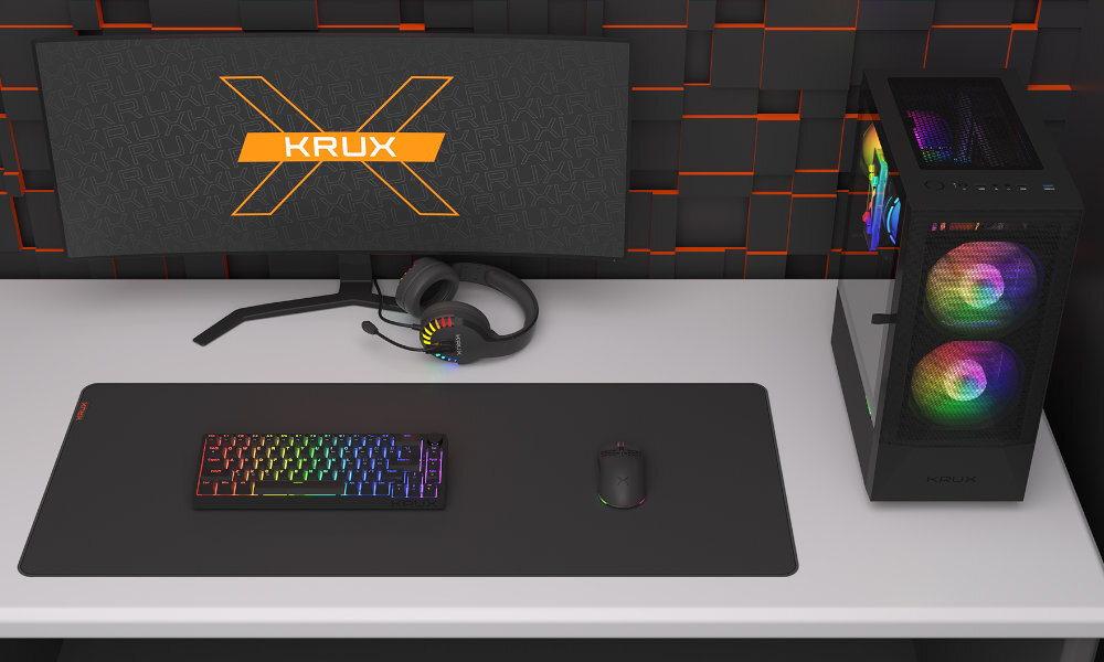 Trzy wysokowydajne wentylatory RGB zamontowane fabrycznie w obudowie KRUX Vako zapewniają ponadprzeciętny przepływ powietrza, co bardzo pozytywnie wpływa na temperaturę podzespołów i ich poziom hałasu. Dwa śmigła 140 mm pompują świeże powietrze, a jedno śmigło 120 mm wciąga ciepłe i niepożądane powietrze do tyłu.