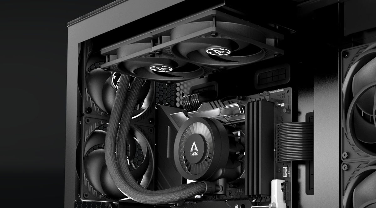 ARCTIC Liquid Freezer III dzięki wbudowanym wentylatorom na radiatorze w konfiguracji push jest gotowy do natychmiastowego użycia. Co więcej, kable wentylatorów zostały inteligentnie zintegrowane z osłoną węży, sprawiając, że podłączenie do płyty głównej wymaga podłączenia tylko jednego kabla. W zestawie znajduje się również pasta termiczna MX-6, gwarantująca szybką i łatwą instalację. Dzięki temu chłodzenie dostarcza wszystkie niezbędne elementy do natychmiastowej instalacji, zapewniając przy tym doskonałą wydajność chłodzenia nawet w najbardziej wymagających warunkach.