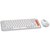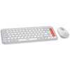 Zestaw LOGITECH POP ICON Combo zawiera: mysz i klawiaturę w kolorze białym, baterię AA do myszki, dwie baterie AAA do klawiatury, naklejki oraz dokumentację.
