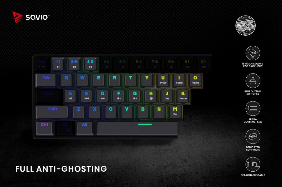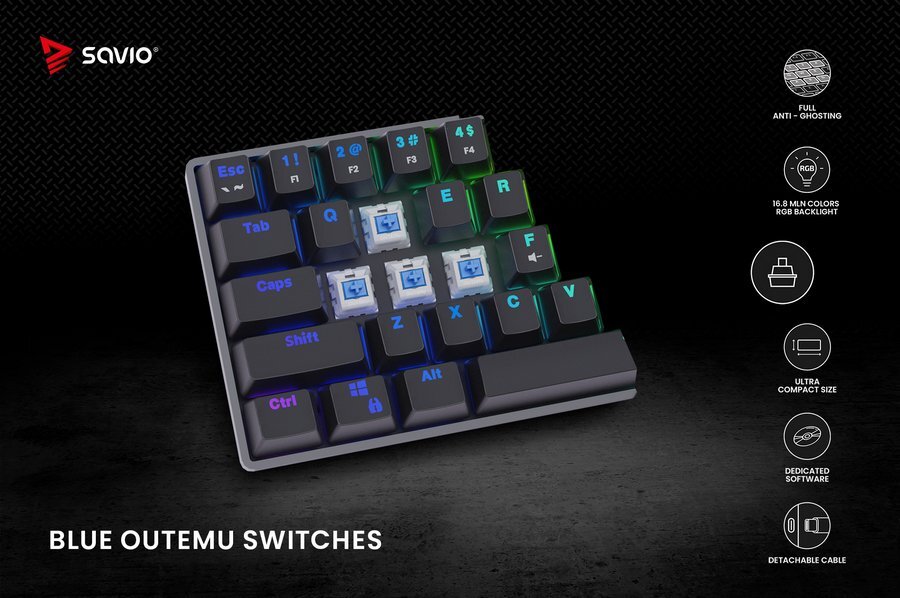 Klawiatura SAVIO Blackout Outemu Blue
