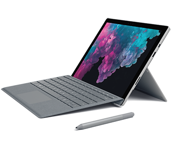 Spersonalizuj urządzenie Surface Pro 6, dopasowując je do własnego stylu. Do wyboru są dwa kolory2 — platynowy lub nowa, wyrazista czerń. Korzystaj ze wszystkich funkcji laptopa dzięki klawiaturze Signature Type Cover*, pióru Surface* i myszy Surface Arc Mouse*.