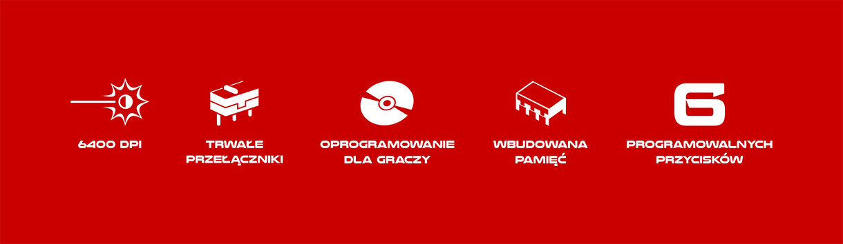 ![]() | ZAAWANSOWANE OPROGRAMOWANIEMysz obsługuje zaawansowane oprogramowanie, które umożliwia przypisanie sześciu przyciskom programowalnym ulubionych funkcji gracza. Co więcej software pozwala na nagrywanie makr i personalizowanie rozmaitych ustawień. |