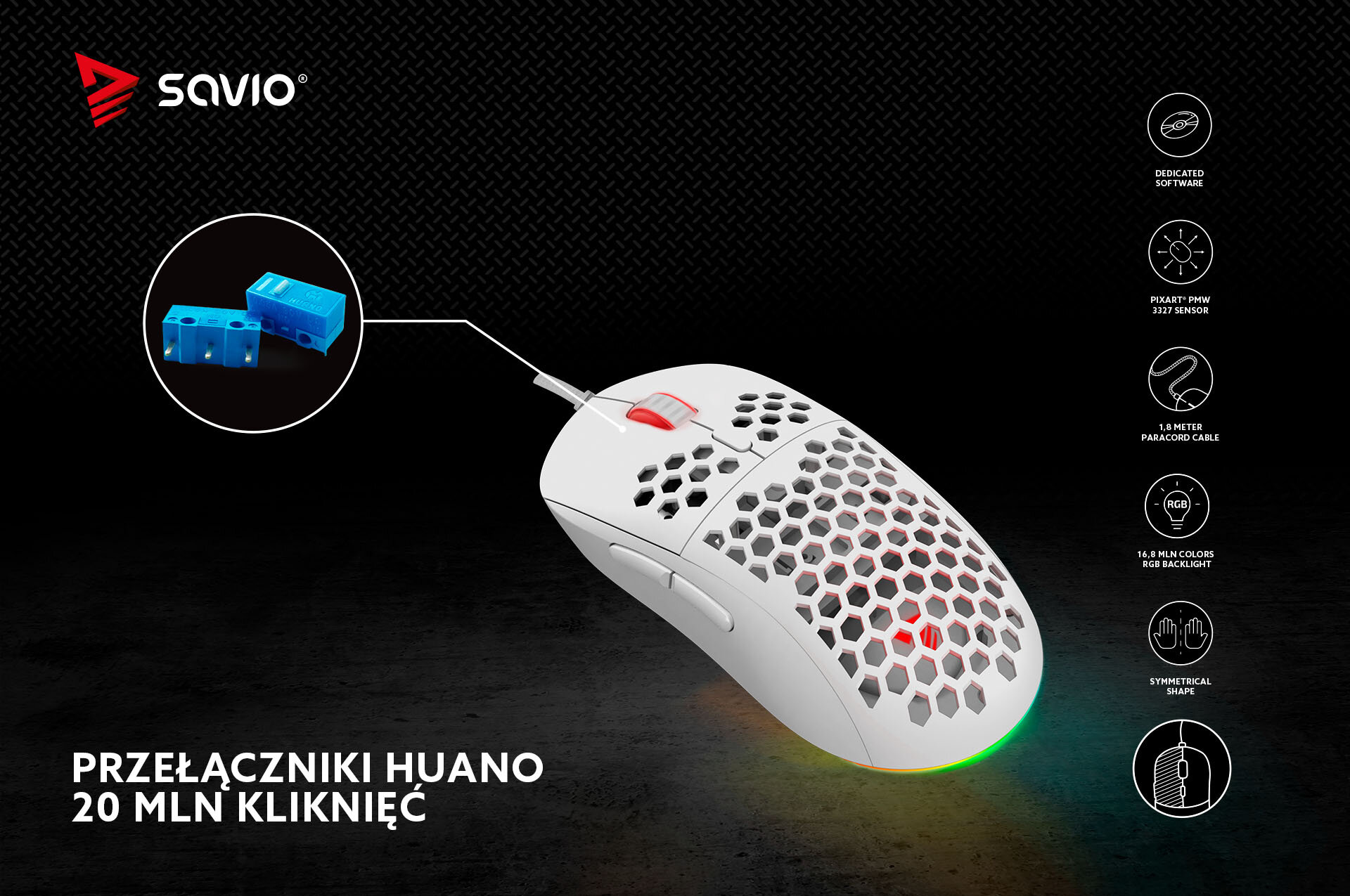 - Mysz SAVIO Hex-R Biały