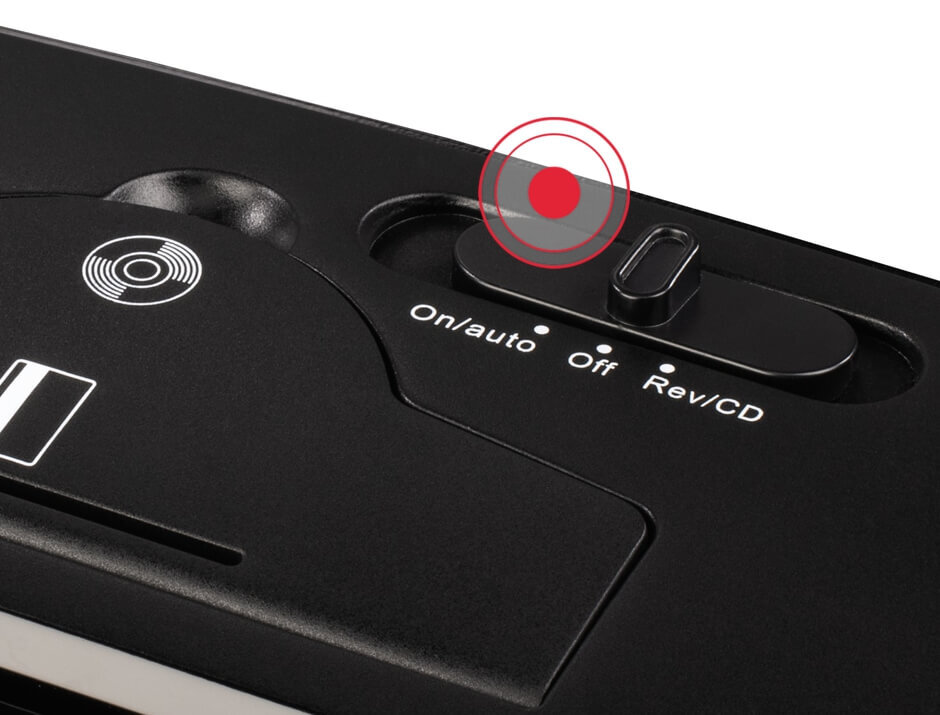 Niszczarka włącza automatycznie wały nożowe po wsadzeniu dokumentów do wlotu i kończy ich pracę natychmiast po ich zniszczeniu.