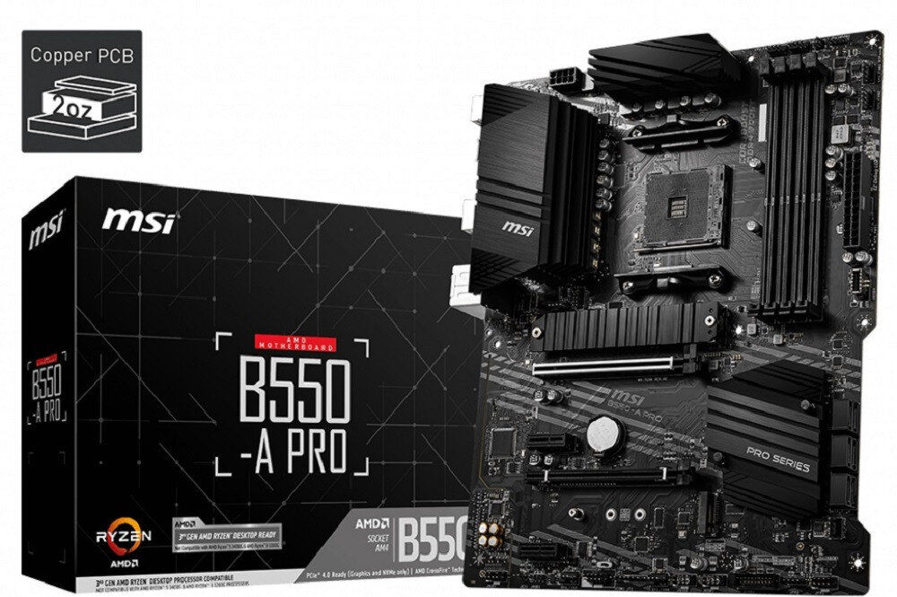 Dedykowana procesorom z rodziny AMD Ryzen płyta główna MSI B550-A Pro, to rozwiązanie dla osób, które chcą zbudować niezwykle wydajny komputer pozwalający zarówno na czerpanie największej przyjemności z grania, jak i zyskanie maksymalnego komfortu pracy. Obsługuje ona aż 128 GB pamięci RAM, pozwala na skorzystanie z najnowszych układów graficznych i posiada liczne złącza, dzięki którym użytkownik może podłączyć różnego rodzaju podzespoły, w tym superszybkie dyski SSD. To także niezawodna trwałość oraz doskonały dźwięk, jakiego potrzebuje każdy miłośnik gamingu czy multimediów.