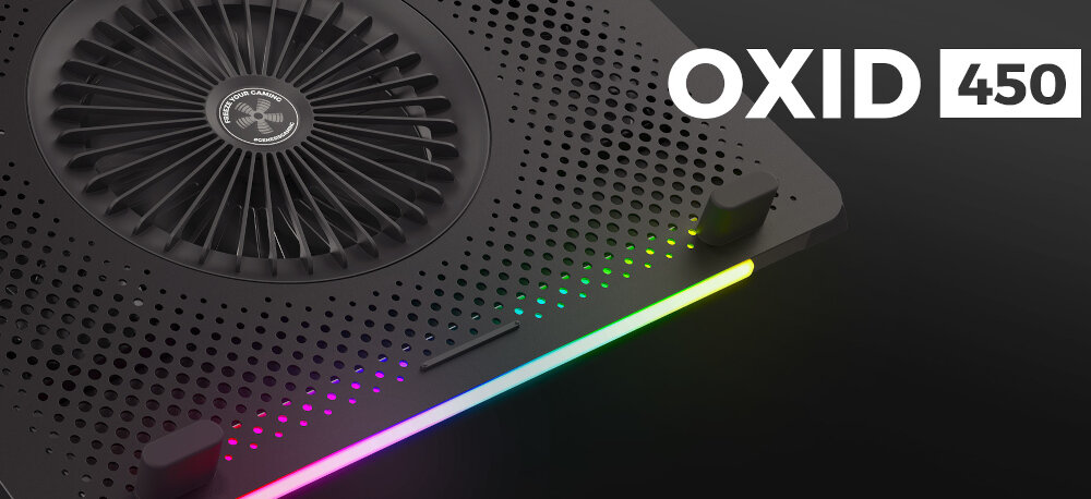 Działaj wydajniej z Genesis Oxid 450 – wydajną podstawką chłodzącą stworzoną dla laptopów o przekątnej 15,6”. Wydajne wentylatory schłodzą Twój komputer przenośny, z kolei unikalny design z podświetleniem RGB nada charakteru każdemu stanowisku. To właśnie Genesis Oxid 450.