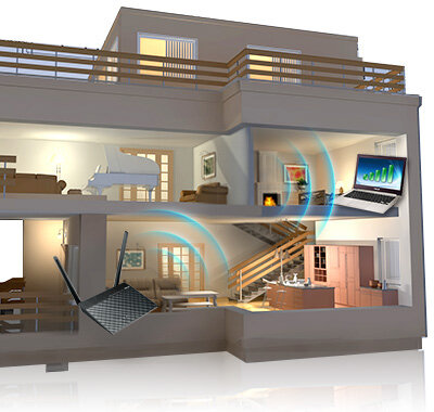 Tryb uniwersalnego wzmacniacza sygnału rozszerza zasięg Wi-Fi każdego standardowego routera bezprzewodowego, zachowując płynną i szybką łączność nawet w budynkach wielopiętrowych.