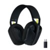 Zestaw słuchawkowy G435 w kolorze czarnym, bezprzewodowy odbiornik USB-A w technologii łączności bezprzewodowej LIGHTSPEED, kabel do ładowania USB-C do USB-A.