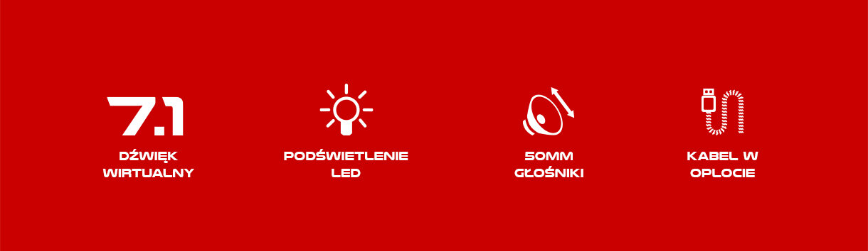 Podstawę słuchawek stanowi nowoczesna karta dźwiękowa, która zadba o najlepsze wrażenia audio. Współpracując z głośnikami o średnicy 50mm wydobywa dla Ciebie dźwięk przestrzenny 7.1 wysokiej jakości, który pozwoli Ci poznać gry na nowo. Jego pozycjonowanie w końcu będzie idealnie odwzorowane, dzięki czemu miejsce przeciwnika Cię nie zaskoczy.