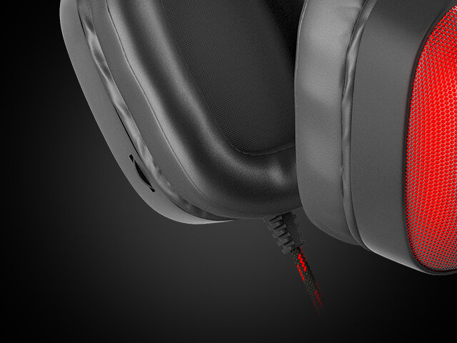 Świetnej jakości materiały wspaniale współgrają z perforowanymi bokami słuchawek podświetlonymi na czerwono, dzięki czemu Radon 720 zyskują prawdziwie oryginalnego charakteru. Efektowny wygląd Radon 720 zapewnia, że słuchawki spełnią oczekiwania nawet najbardziej wymagających graczy.