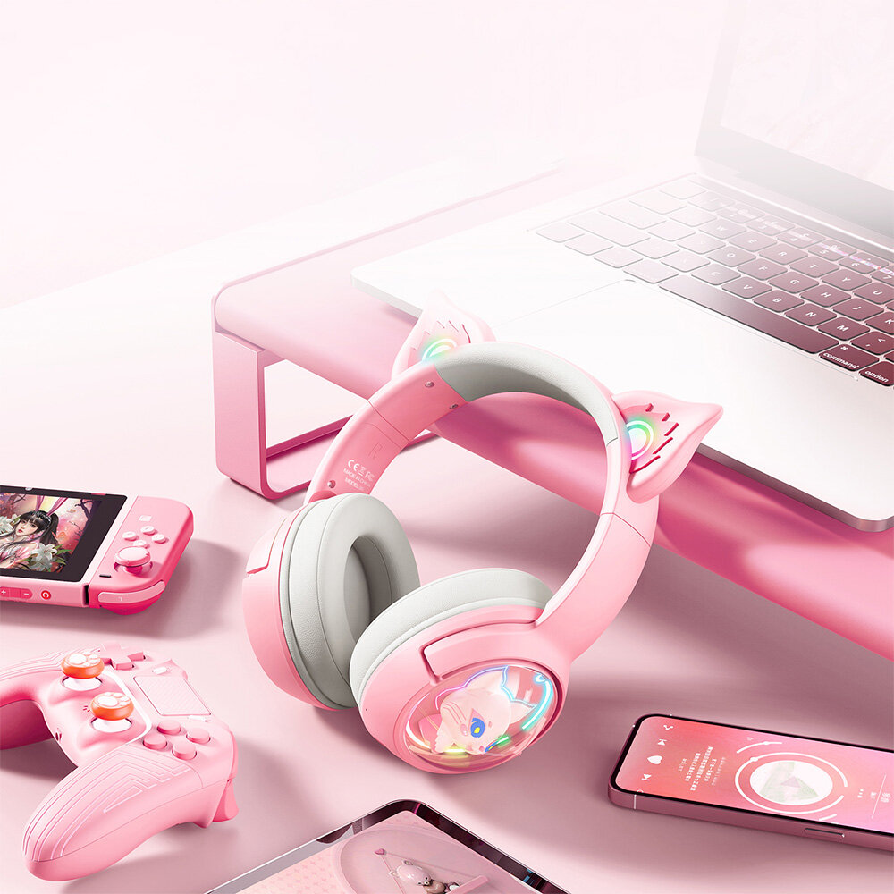 - Słuchawki ONIKUMA B5 CAT Bezprzewodowe, Nauszne Różowy