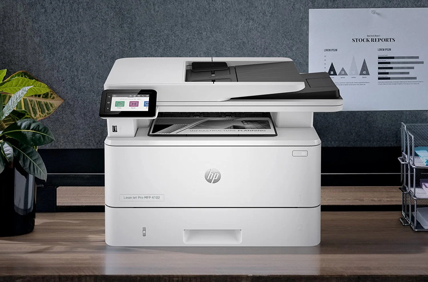- Urządzenie wielofunkcyjne HP LaserJet Pro 4102fdw Automatyczny druk dwustronny, Wi-Fi, Bluetooth