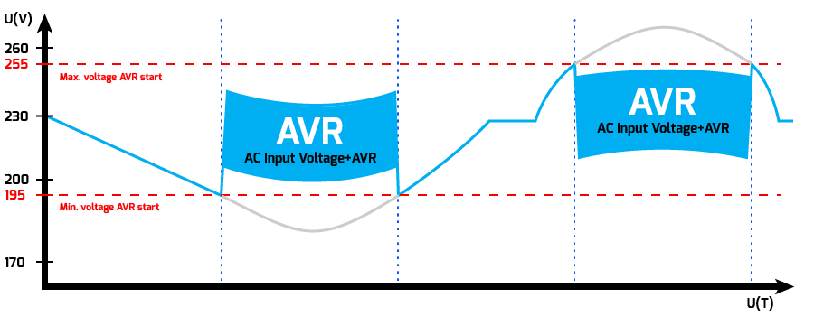Całość zapewnia komfort oraz zachowuje wysoką wydajność, a w przypadku ciągłej nadwyżki lub deficytu napięcia zasilania UPS ma możliwość długiego utrzymania nominalnego napięcia na wyjściu UPS-a bez przechodzenia do trybu bateryjnego co pozwala oszczędzić czas, który stricte powinien być przeznaczony tylko na okres podtrzymania na baterii.